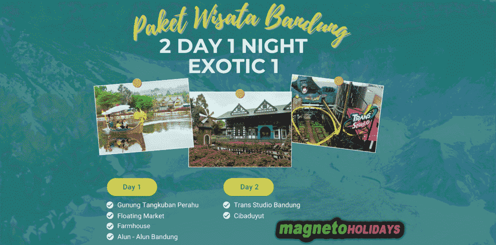 Paket Wisata Bandung 3 Hari 2 Malam bersama Magneto Holidays. Bandung, kota yang dikenal dengan udara sejuk, pemandangan alam yang memukau, dan budaya yang kaya, adalah destinasi wisata yang cocok untuk liburan seru anda. aket wisata Bandung 3 hari 2 malam ini memberikan Anda kesempatan untuk mengeksplorasi keindahan alam, menikmati wahana seru, mencicipi kuliner khas, dan berbelanja oleh-oleh yang unik. Dengan itinerary yang teratur, Anda dapat menikmati liburan yang menyenangkan.